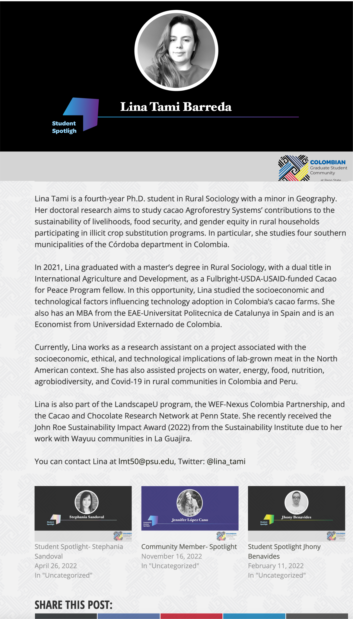 Through the Cultural Storytelling series, we aim to bridge the gap between past and present, culture and science, personal and professional. By sharing these powerful stories, we hope to ignite a passion for exploration and discovery, fostering a deeper understanding and appreciation of the rich heritage and remarkable achievements of the Penn State Colombian Graduate Students Community.